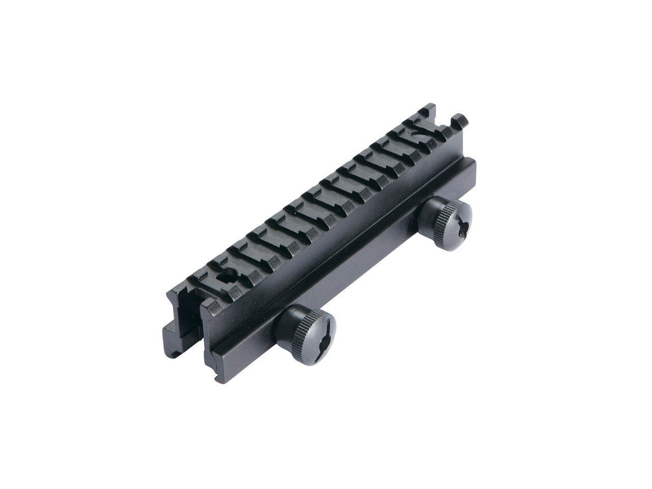 Originally designed for the AR15 type Airsoft guns, this mounts on-top of the receiver rail and provides a 25mm (1 in.) higher rail for lifting any aiming devices like a red-dot sight higher, making it more comfortable for shooters wearing full face masks. It is perfectly centered on the top rail and features a see-through tunnel, allowing the use of back up fixed sights. 2 mounting screws are included to secure certain sights systems which features matching threaded holes.