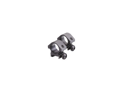 Set of 2 Wide but low-profile rings each with 2 screws. Keeps scope or dot-sight close to the rail.