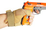 Tan fingerless gloves that have a solid ABS guard covering the knuckles and EVA foam palm pads for improved protection.