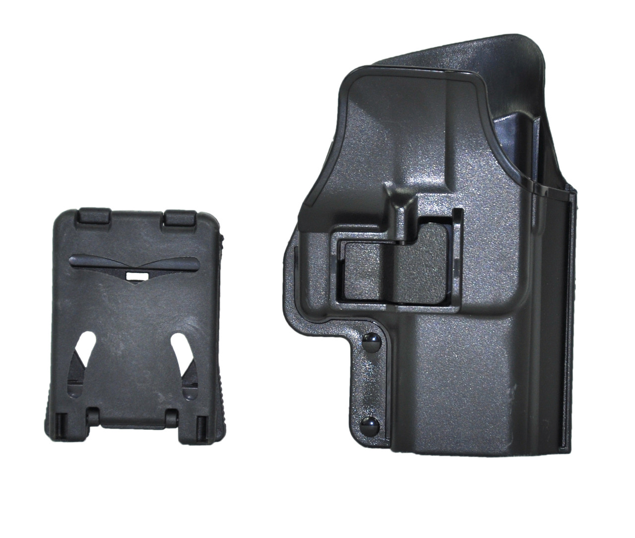This is a OWB (Outside the Waistband) Solid Pistol Holster that's made to fit onto your belt. The holster is made for a galaxy G15, made of ABS plastic and designed to lock the gun into position so that, whenever you holster your weapon it will only release by pushing the pressure switch. This type of holster is ordinarily very expensive, and if you search online for one, it would usually cost more than this one does, making this product awesome value.
