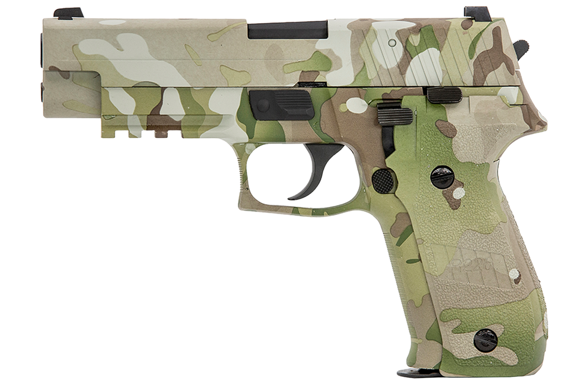 This P226 gas pistol in camo has everything you need from a compact pistol. This pistol has an attractive camouflage pattern which makes it comfortably blend in with its surrounding. The pistol has a woodland camouflage that works very well and blends in nicely to MTP (Multi Terrain Pattern) giving this pistol a very veritile camouflage that can hide it in most places. This pistol is excellent for snipers as it can be concealed easily and has ideal range and power.