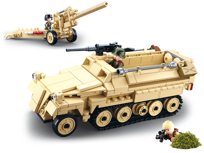 This toy construction brick model of a German Half-Track has nothing to do whatsoever with Lego company, but if you push this brick on a lego one, they normally fit, so if you have a little lego already, this is a great accompaniment to your collection.